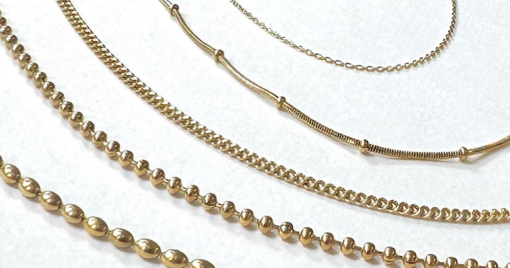 例えばネックレスの場合、飾りのないものが一番シンプルなものです。「チェーンネックレス」と呼ばれるものですが、ネックレスで一番シンプルなアイテムです。
