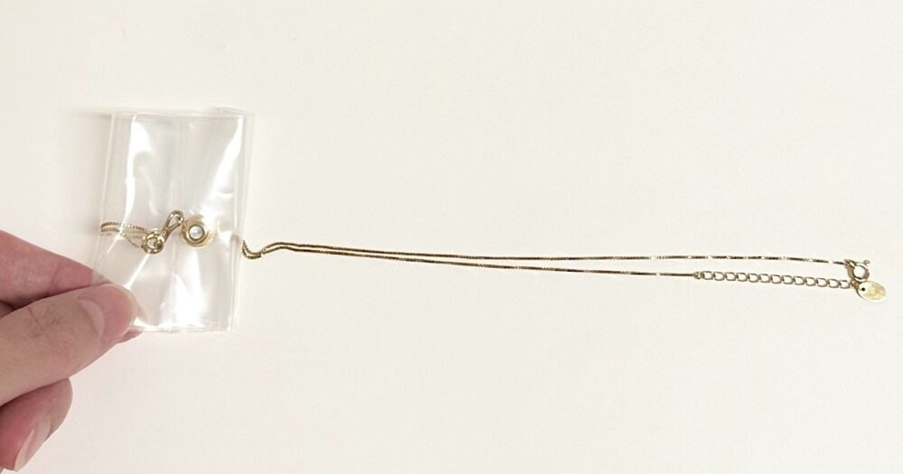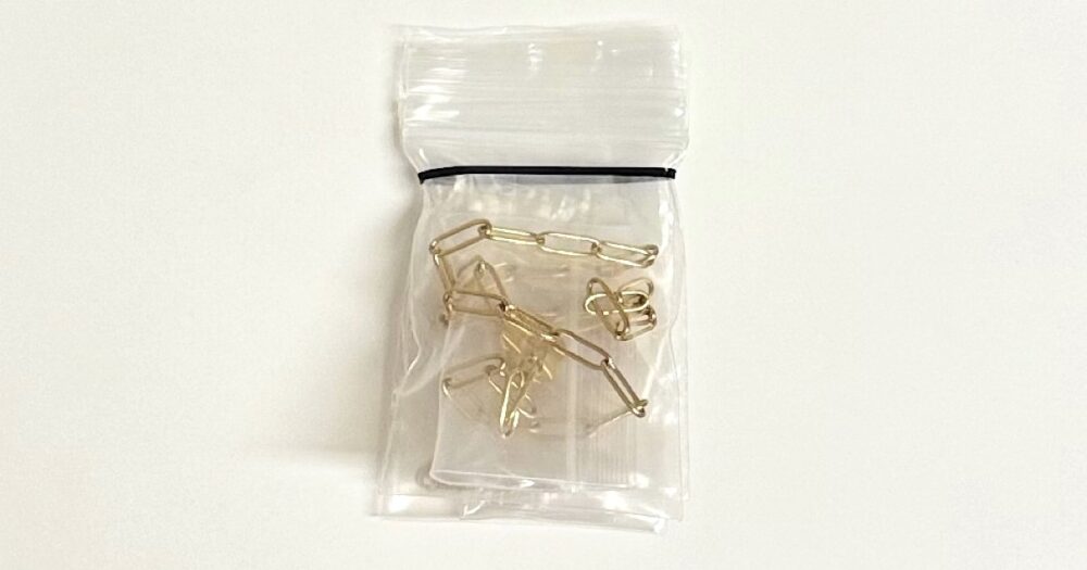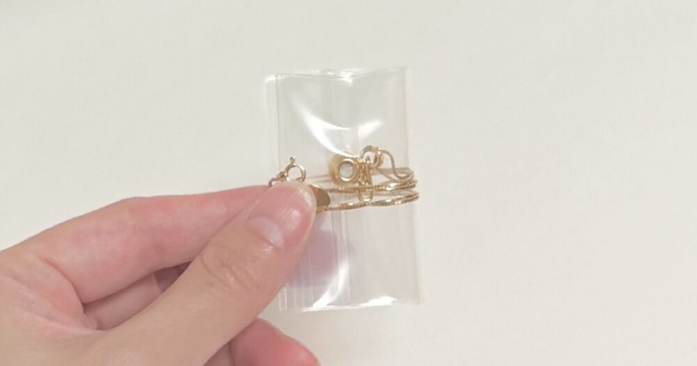 これでチェーンが絡まらず、変色も防ぐことができます。ジュエリーショップで活用しているプロの保管方法なので自信をもっておすすめします。